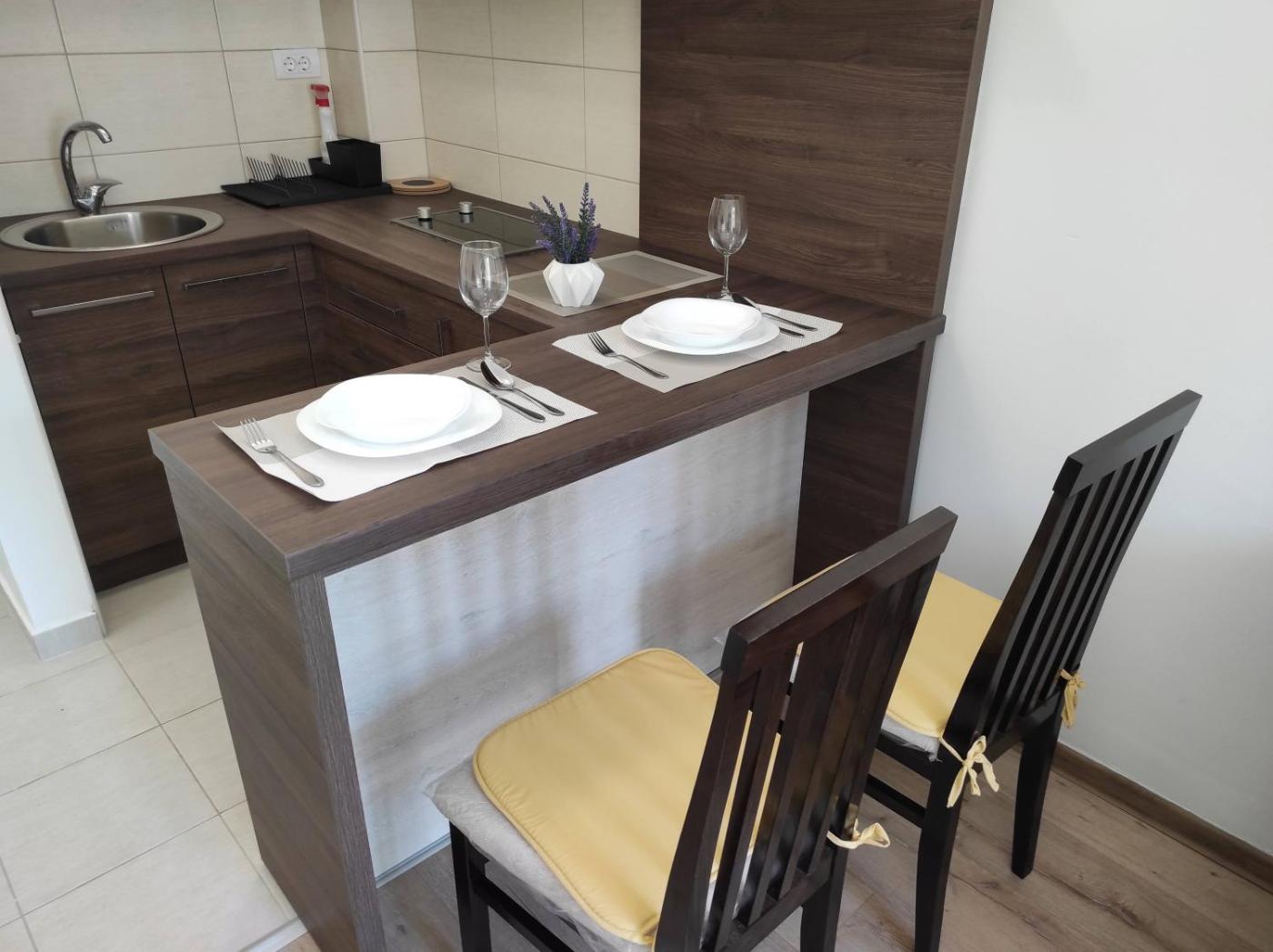 The apartment is fitted with 1 bedroom, 1 bathroom, bed linen, towels, a flat-screen TV with satellite channels, a fully equipped kitchen, and a balcony with mountain views. Offering free private parking, this 3-star apartment also features free WiFi. For added privacy, the accommodation has a private entrance and soundproofing.