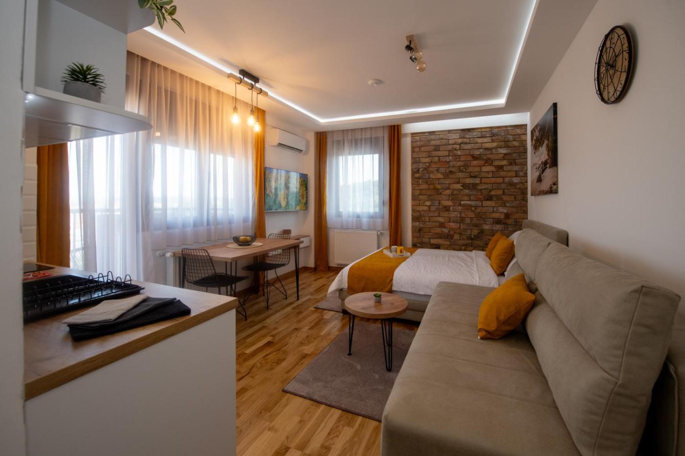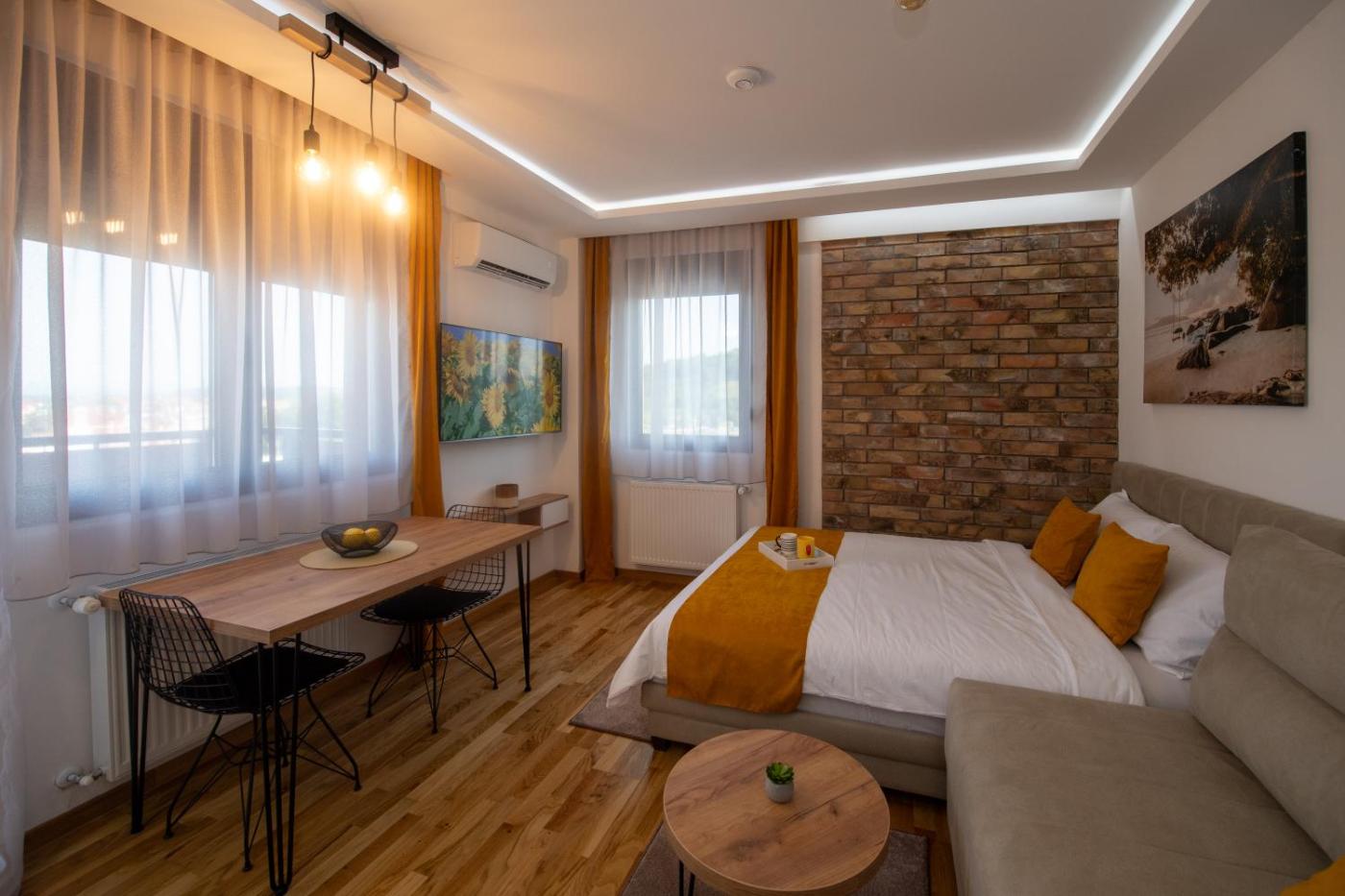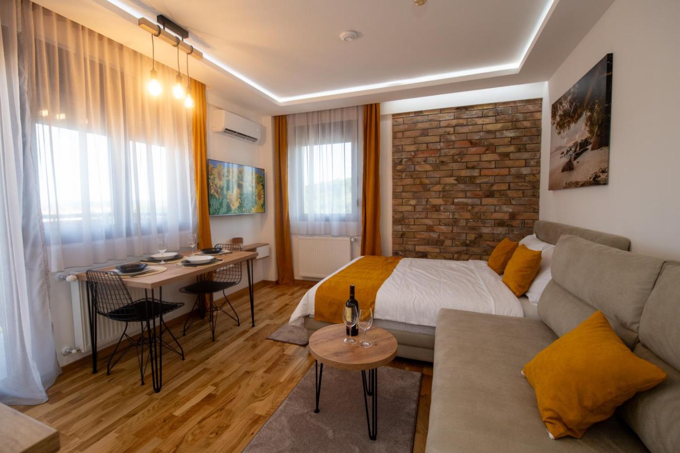 Boasting air-conditioned accommodation with a private pool, city view and a terrace, Lux Apartman Sunce is situated in Jagodina. Guests staying at this apartment have access to a balcony. The accommodation offers a lift and full-day security for guests.