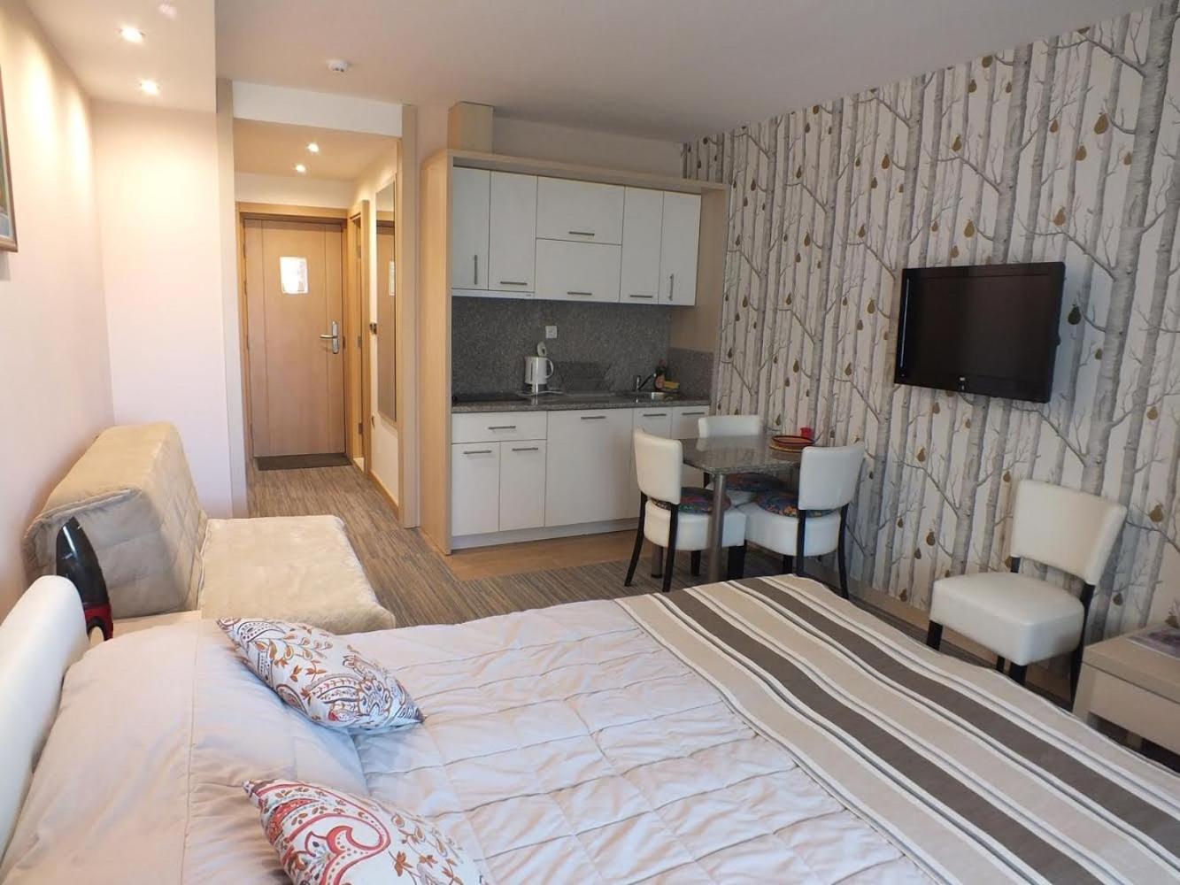 Superior Studio. Offering free toiletries, this studio includes a private bathroom with a shower and a hairdryer. In the well-equipped kitchen, guests will find a stovetop, a refrigerator, kitchenware and a microwave. This wheelchair accessible studio has a private entrance, a seating area with a flat-screen TV and a roll-in shower. The unit has 3 beds. ;