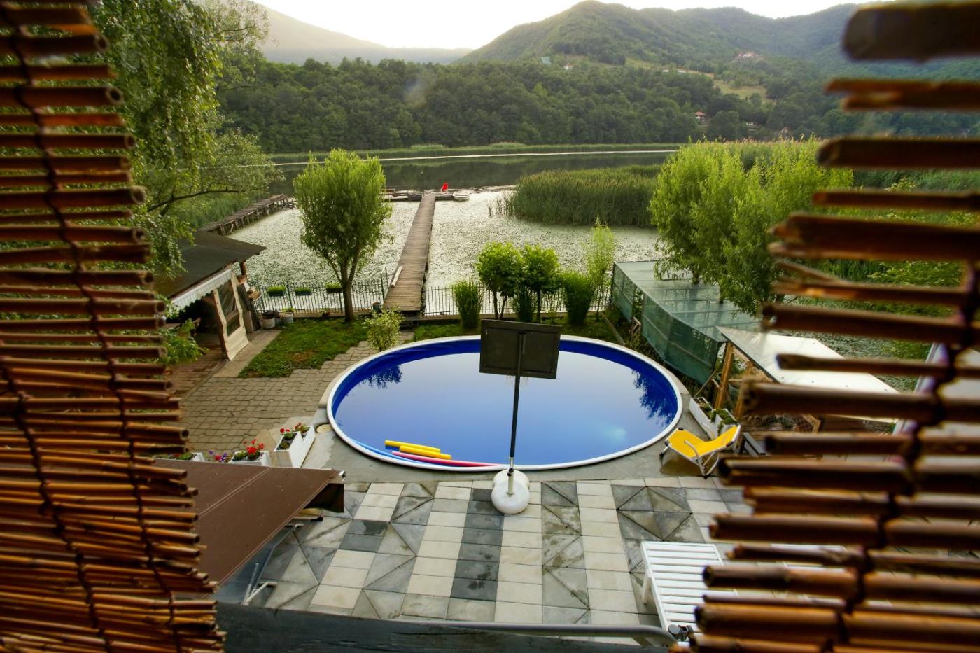 Two-Bedroom House. This holiday home provides a pool with a view. Boasting a private entrance, this air-conditioned holiday home includes 3 living rooms, 2 separate bedrooms and 1 bathroom with a shower and a hairdryer. Guests will find a stovetop, a refrigerator, kitchenware and an oven in the well-equipped kitchen. The holiday home also features a barbecue. Featuring a terrace with lake views, this holiday home also offers a washing machine and a flat-screen TV with cable channels. The unit has 6 beds.
