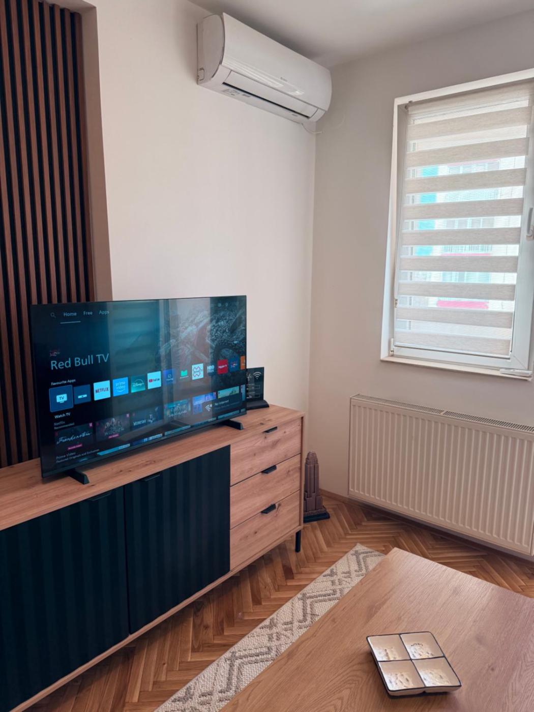 One-Bedroom Apartment. This apartment comes with 1 living room, 1 separate bedroom and 1 bathroom with a shower and free toiletries. The apartments kitchen, which has a stovetop and a refrigerator, is available for cooking and storing food. The air-conditioned apartment features a flat-screen TV with streaming services, a washing machine, a seating area, an electric kettle as well as city views. The unit has 2 beds.