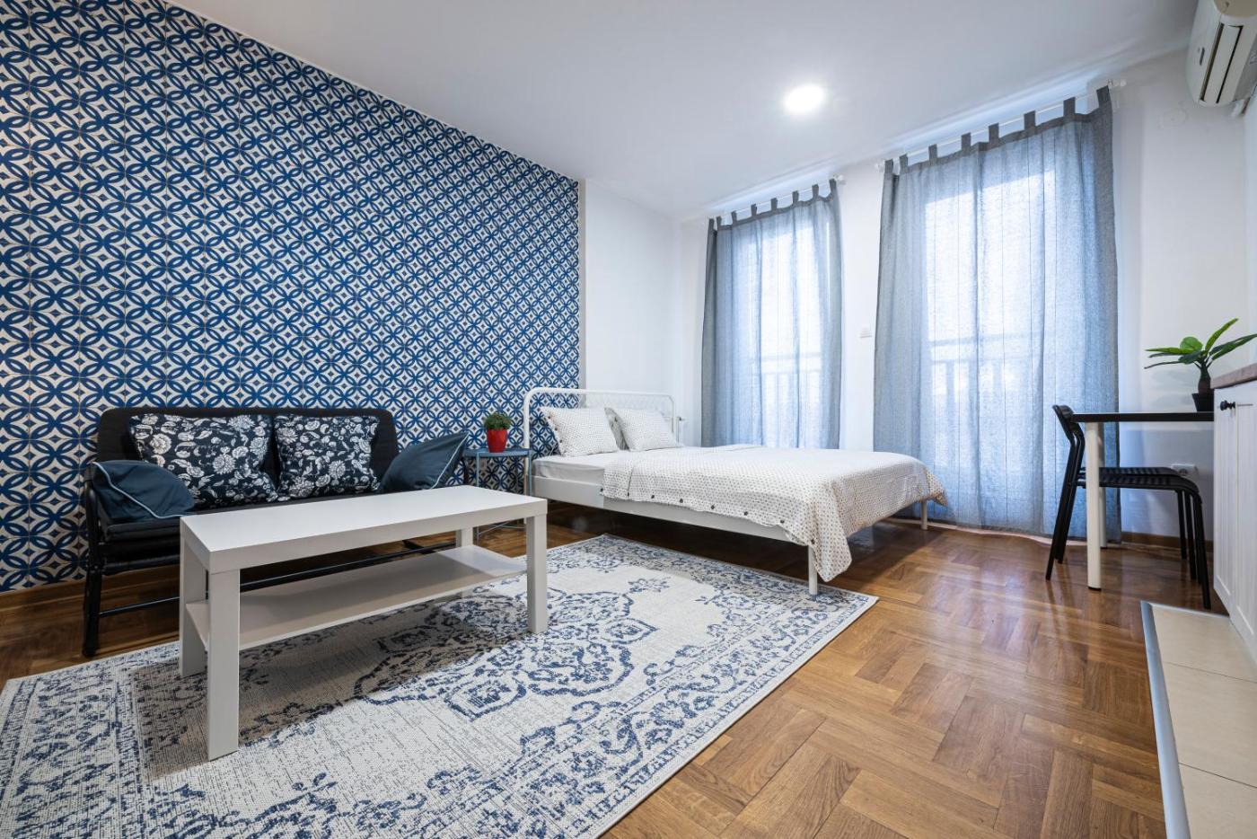 Studio Apartment. Boasting a private entrance, this air-conditioned apartment features 1 living room, 1 separate bedroom and 1 bathroom with a bath and a shower. In the fully equipped kitchen, guests will find a stovetop, a refrigerator, kitchenware and a microwave. The apartment features a flat-screen TV with streaming services, a washing machine, soundproof walls, a tea and coffee maker as well as city views. The unit has 2 beds.