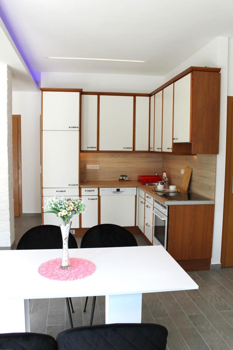 Two-Bedroom House. Featuring a private entrance, this holiday home is comprised of 1 living room, 2 separate bedrooms and 1 bathroom with a shower and a hairdryer. Guests will find a stovetop, a refrigerator, a dishwasher and kitchenware in the well-equipped kitchen. The holiday home also has a barbecue. Boasting a terrace with garden views, this holiday home also offers a wardrobe and a flat-screen TV. The unit offers 3 beds.